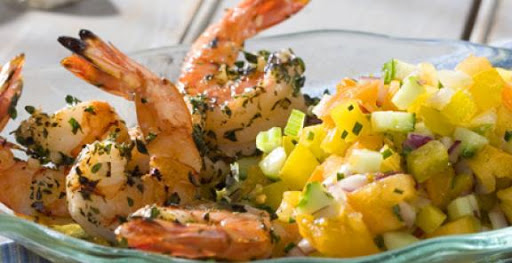Grilled Shrimp Cocktail with Yellow Gazpacho Salsa