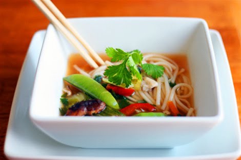 2. Bring a large pot of water to a rolling boil and add in soba noodles. Cook for 6 minutes, or at least two minutes less than the instructions on the package. Strain, and stir into soup.