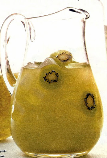 Garnish with peeled kiwifruit slices.
