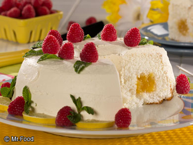 - inch) prepared angel food cake 1 1/2 cups lemon curd, with 3 tablespoons reserved for topping (about 14 ounces) 1 (12