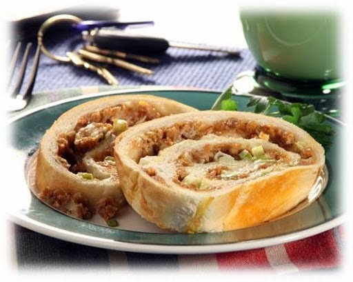 Spray counter lightly with non-stick cooking spray. Combine rolls into a ball and roll into a 9x18-inch rectangle. Cover with plastic wrap and let rest 15 minutes. In a medium size bowl combine sausage and 1 beaten egg. Remove wrap from dough and spread sausage mixture evenly over dough. Top with mozzarella cheese. Roll up, jelly roll style, starting with a short side. Pinch ends together to seal. Place in a sprayed 9x5-inch bread pan, seam side down. Beat remaining egg and brush over top of loaf. Bake at 350°F 45-55 minutes. Cover with foil last 10 minutes of baking to prevent over browning. Remove from pan to cool. Let cool 20 minutes before slicing.