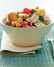 Big cubes of bread in this traditional Italian salad soak up the zesty dressing; white beans and provolone pump up the protein for a well-balanced vegetarian meal.
