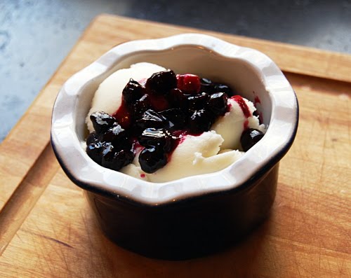 Cover and cool to room temperature, or better yet, chill several hours. Churn in ice cream maker, then transfer to freezer for at least 45 minutes before serving. Serve with blueberries, other berries, fresh fruit, chocolate sauce . . . whatever floats your boat.