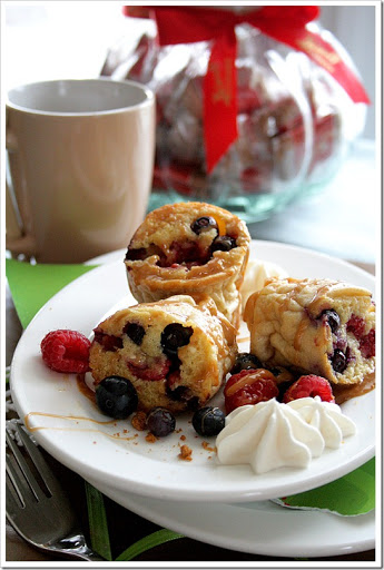 In medium bowl, beat the eggs with the milk, vanilla, ginger and sugar, then whisk in the flour. Pour the batter into the butter filled cups, then evenly add a few berries to each cup. Return to oven for 5 minutes, then reduce the temperature to 350 and continue to bake for another 20 minutes. Drizzle with Biscoff Syrup or your favorite syrup, and whipped cream. Serve and enjoy!