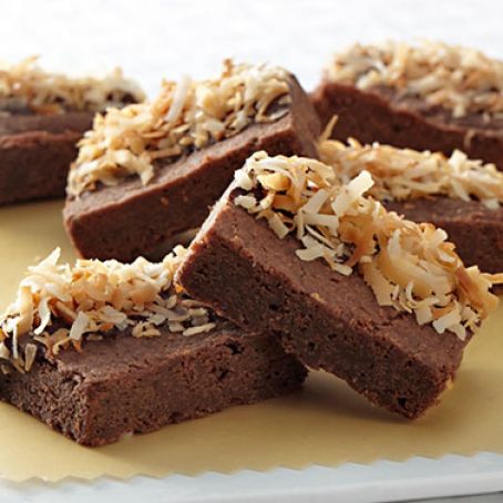 Two toned brownies dipped in chocolate and sprinkled with shredded coconut. Yes please!