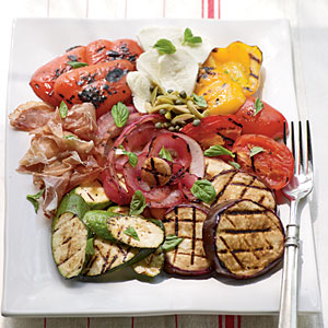 Wine note: Easygoing tannins make northern Italy's Valpolicella the go-to red wine for cured meats. Without the use of oak, Tenuta Sant'Antonio Nanfré Valpolicella 2007 ($13) lets its fruit flavors shine. The cherry flavors and earthy notes meld beautifully with the charred vegetables. —Jeffery Lindenmuth