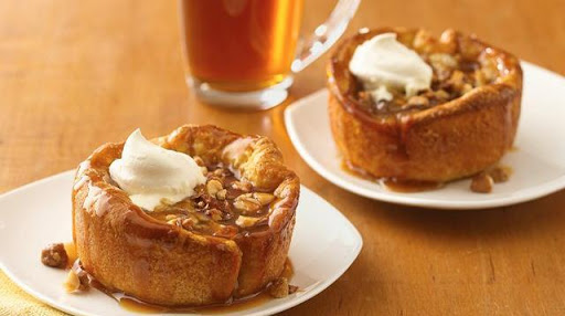 Meanwhile, pour remaining caramel topping into small bowl; stir in liqueur. Drizzle over warm biscuit cups. Serve topped with whipped topping. Store covered in refrigerator.