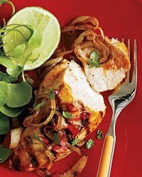 2.Light a grill. Remove the chicken from the marinade and grill over high heat until nicely browned and just cooked through, about 5 minutes per side. Transfer the chicken to a platter and brush with the melted butter. Scatter the cilantro over the top and serve with lime wedges.