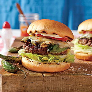3. Preheat both sides of grill to 350° to 400° (medium-high) heat. Shape ground chuck into 12 patties; sprinkle with desired amount of salt and pepper. Grill patties, without grill lid, 4 to 5 minutes on each side or to desired degree of doneness. Place 2 to 3 pepper halves on each patty; top with cheese. Grill, covered with grill lid, 1 to 2 minutes or until cheese melts.