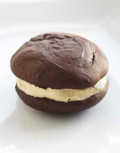 Spoon 1/4-cup mounds of batter about 2 inches apart onto 2 buttered large baking sheets. Bake in upper and lower thirds of oven, switching position of sheets halfway through baking, until tops are puffed and cakes spring back when touched, about 12 minutes. Transfer to a rack to cool completely, then match cookies in pairs based on size.