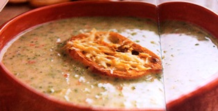 4. Warm soup on high, stirring occasionally, until cheese melts. Season with hot-pepper sauce, saly and pepper to taste. Ladle into bowls and top each with a Parmesan crisp (if using).