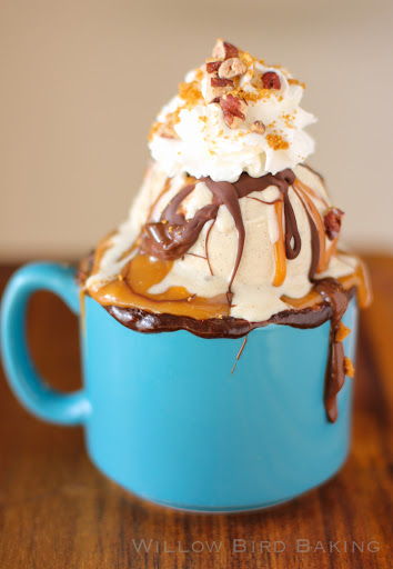 The Ultimate Gooey Caramel Brownie Mug Cake Sundae