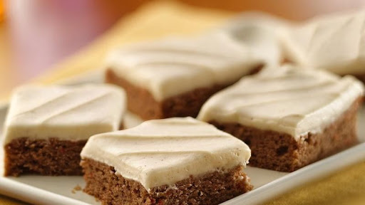 In medium bowl, beat cream cheese, butter, milk, vanilla and cinnamon with electric mixer on low speed until smooth. Gradually beat in powdered sugar, 1 cup at a time, until smooth and spreadable. Spread frosting evenly over cooled bars. Store covered in refrigerator.