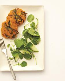 Lentil Cakes with Feta-Yogurt Sauce and Cucumber-Cress Salad