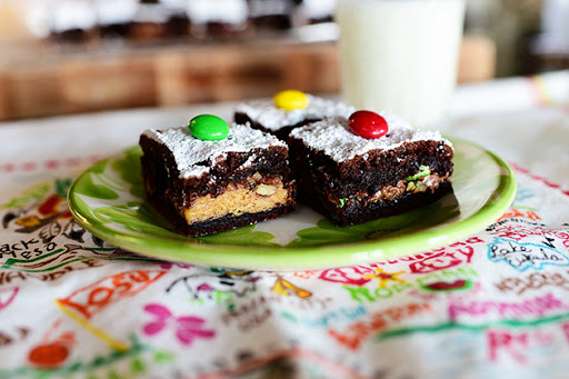 O MY GOODNESS, you got me at Peanut Butter cups, but then add M&M’s, and Rolo’s and nuts, Wow!! My son would love these. Ree you must have a really Big sweet tooth!lol!