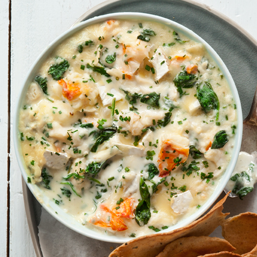 2.Add mozzarella, yogurt, cream cheese, lemon juice and cayenne to the bowl of a food processor and pulse until thoroughly combined. Using a spatula, scrape cheese mixture into bowl with spinach. Stir in lobster, Brie, chives and parsley. Season with salt and pepper.