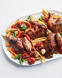 Giada De Laurentiis is a chicken cacciatore expert: She's been making variations of it for years. For this exceptional version, the chef roasts a whole bird with red wine butter under the skin, on a bed of fennel, cherry tomatoes and Peppadew peppers.