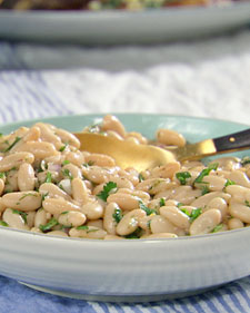 1. Combine the beans in a large bowl with the red onion, parsley, optional herb of choice, salt, and pepper.