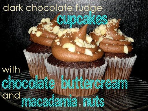 Dark Chocolate Fudge Cupcakes with Chocolate Buttercream and Macadamia Nuts