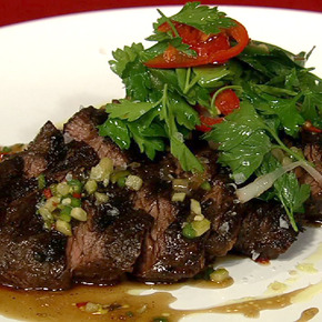 Chew: Michael Symon's Hanger Steak with Pickled Vegetable Sauce