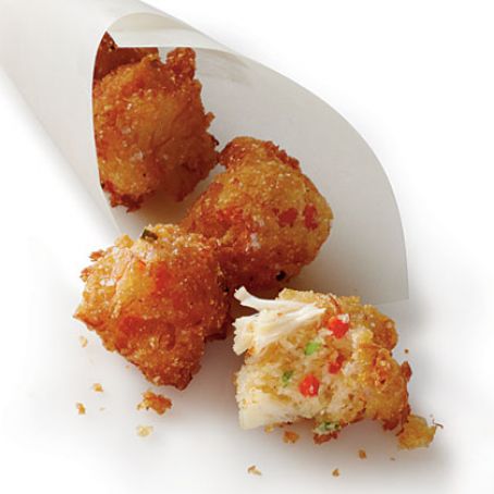 Stir together cornmeal mix, flour, green onions, bell pepper, sugar, and salt in a large bowl. Stir in crabmeat, egg, and beer until just moistened. Let stand 10 minutes. Pour oil to depth of 2 inches into a Dutch oven; heat to 360°. Drop batter by tablespoonfuls into hot oil, and fry, in batches, 2 to 3 minutes or until golden brown, turning once. Serve with your favorite rémoulade or cocktail sauce.