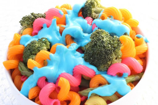 For a little fun, I added a drop of food coloring to our water to boil the pasta to represent the plastic town of Thneedville, along with a drop of blue food coloring for the river. My kids are having their friends over Friday for dinner and the movie, so this will just add to the enjoyment of the movie. Not to mention, even with a drop or two of food coloring, it beats burgers and fries on the nutrition scale.