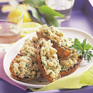 This healthy yet hearty grilled bruschetta recipe features mashed cannellini beans and the bright flavors of fresh lemon and parsley with a touch of garlic.
