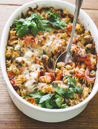 Mediterranean Chicken + Pasta Bake