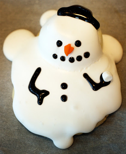Pipe on coal eyes and mouth, carrot nose, stick arms, buttons, scarf and hat. Let frosting set and store in airtight container.