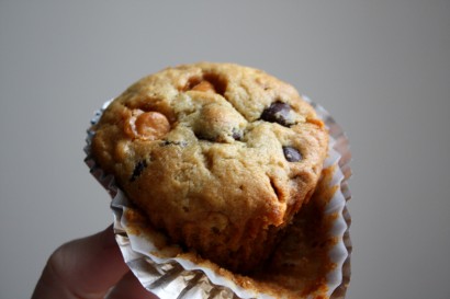 Peanut Butter Banana Muffins with Chocolate & Butterscotch Chips