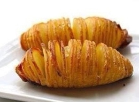 Wash Potatoes. Cut potatoes thin almost all the way through as shown in picture.