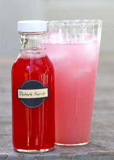 Set a fine-meshed strainer (or a coarse strainer lined with cheesecloth)over a large bowl. Pour the rhubarb through the strainer until most of the liquid is in the bowl. Press the solids a little with the back of a spoon to extract more syrup.