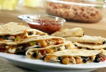 4.Bake for 5 minutes or until the filling is hot. Cut the quesadillas in half, making 20 pieces. Serve with the Fiesta Rice.