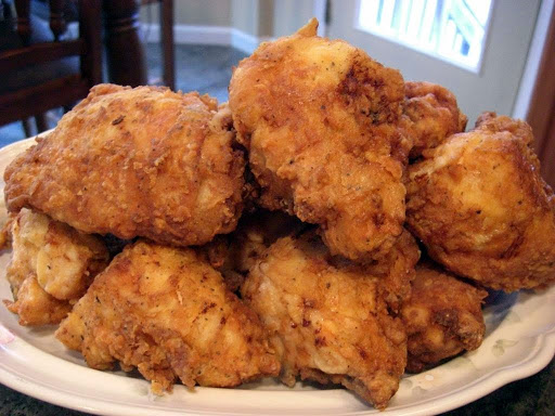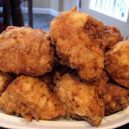 Finger licking good Southern fried chicken recipe adapted from Paula Deen. Make sure to bring the oil back to 350°F between batches so all the chicken is perfectly fried. Enjoy!