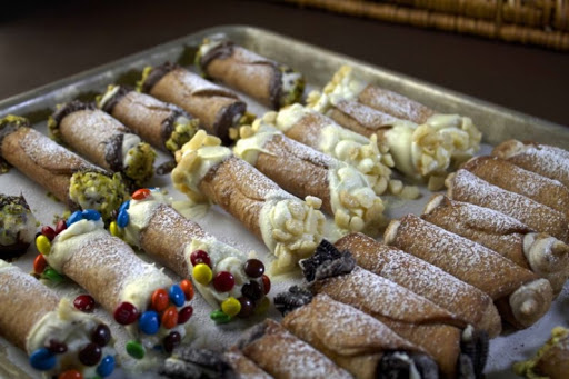 Mix in optional fillings (mini chocolate chips, crushed candy pieces, etc.) as you wish. Mini chocolate chips mixed into the filling, ends dipped in pistachios after filled is more traditional.