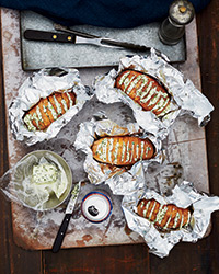 Grill-Baked Potatoes with Chive Butter