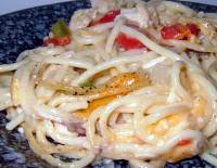 4. Return chicken broth to a boil; add spaghetti noodles and cook until desired doneness; drain and set aside.