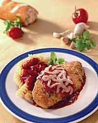 1. Preheat oven to 400°F. Dip chicken in egg, then bread crumbs, coating well.