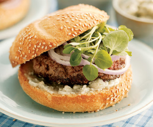 Watercress and a blue-cheese compound butter lend a little sophistication to your basic burger.