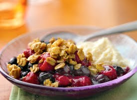 In ungreased 8-inch square (2-quart) glass baking dish, place blueberries, raspberries and lemon juice. Microwave uncovered on High 4 to 6 minutes, stirring once, until thawed.