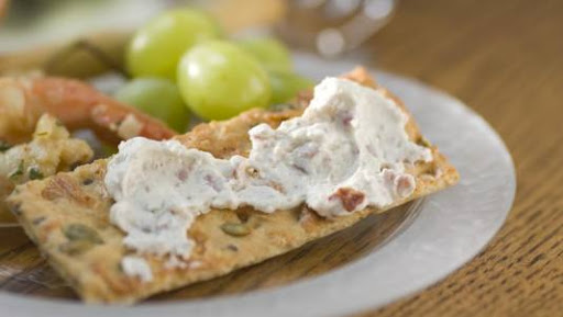 1) Combine all ingredients (except 1 bacon slice and celery sticks) in a food processor. Blend until smooth. Transfer to a serving bowl and refrigerate until party time. Crumble remaining bacon slice and sprinkle over cheese mixture. Serve with celery sticks, sliced on the diagonal and with tough strings removed.