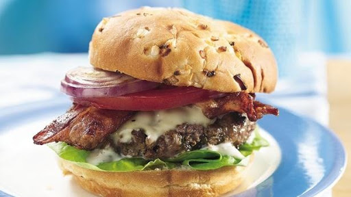 Meanwhile, brush onion slices with olive oil. Add to grill last 5 to 8 minutes of cooking time for patties. To toast buns, place cut side down on grill during last 1 to 2 minutes of cooking time.