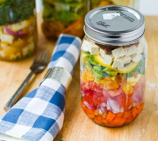 8. Storing the salad: Screw the lid on the jar and refrigerate for up to 5 days. If you're including any cheese, proteins, or soft fruits and vegetables, add these to the top of the jar the morning you plan to eat your salad.