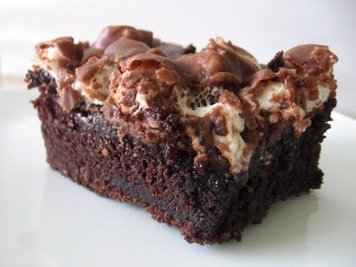 Bake in greased and floured 10x15 inch pan. Bake 20 minutes at 350 degrees. Remove from oven, cover with marshmallows. Put back in the oven for 4 minutes. Let cool and frost.