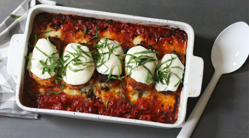 9. Bake until the chicken is cooked through, the sauce is bubbly and the cheese is melted, 30 to 40 minutes. Let cool 10 to 15 minutes. Garnish with chopped basil and serve.