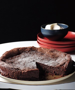 Heat oven to 350° F. Butter a 9-inch springform pan and dust with cocoa powder.