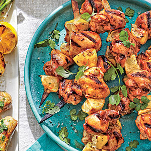 4. Grill kabobs, covered with grill lid, 6 to 8 minutes on each side or until chicken is done. Transfer to a serving platter. Sprinkle with cilantro leaves.