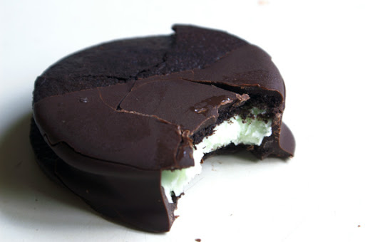 double dark chocolate-dipped fresh mint ice cream sandwiches.