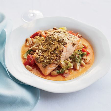 Mustard Salmon with Cannellini Bean Ragù
