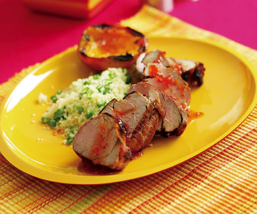 Pork Tenderloin with Tequila-Hot Pepper Glaze & Grilled Peaches